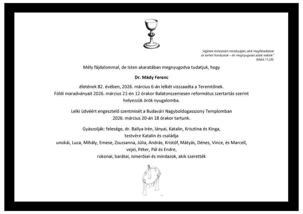 Prof. Dr. Mády Ferenc a családja, az ugyancsak orvos felesége, három gyermeke és unokái körében teljes életet élt. Szabadidejében írással és festészettel foglalkozott, élete utolsó éveit szinte csak ez töltötte ki. Sorsszerű, hogy a 2026. február 27-én megnyílt budavári életmű-kiállításán számos barátja és volt kollégája köszönthette őt. Az ő szeretetük tudatában hunyta le szemét, immár örökre, 2026. március 6-án.