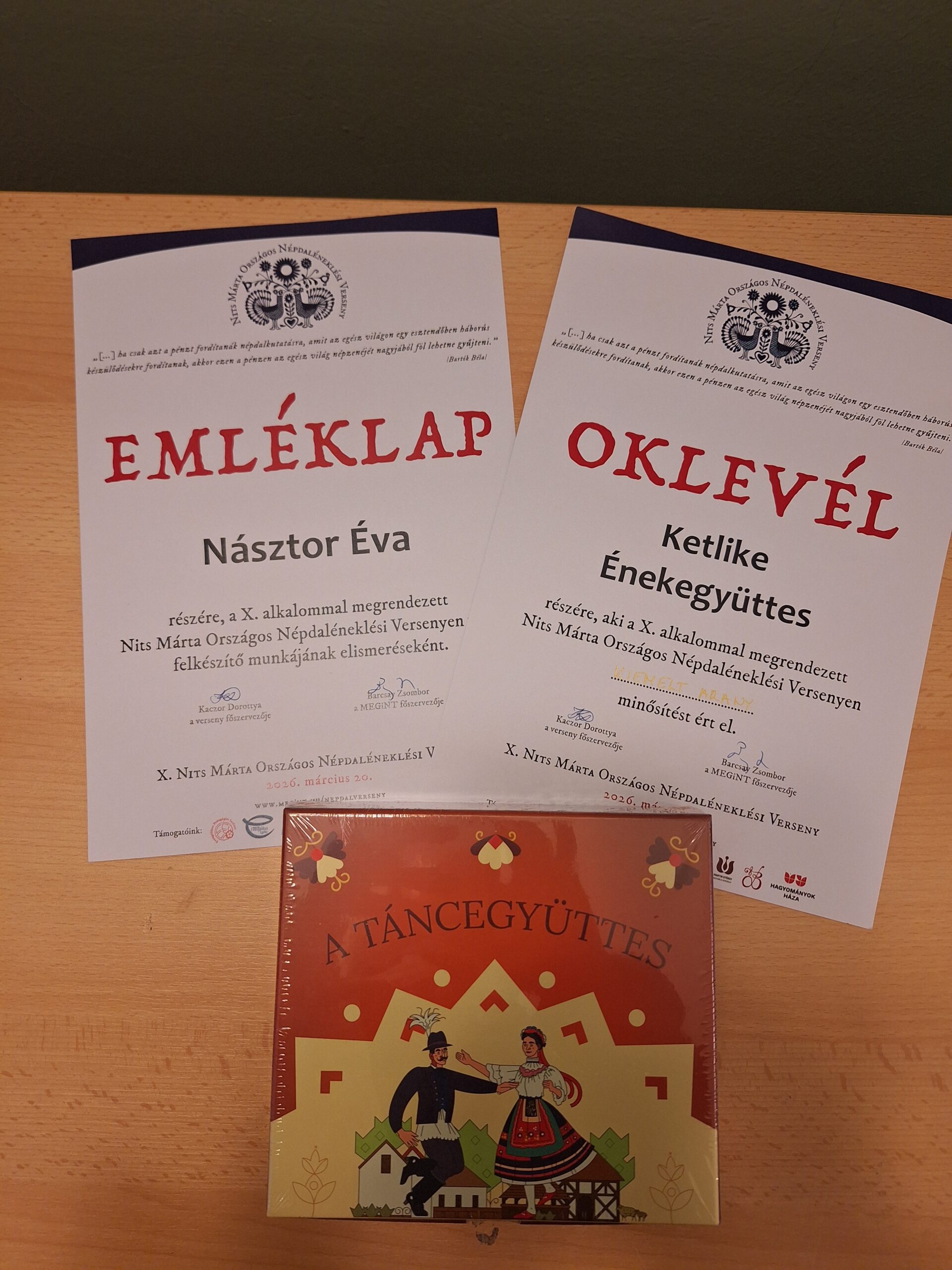 A diákok nagy sikert arattak a pénteki versenyen, a 10.-esek KIEMELT ARANY MINŐSÍTÉSBEN, a 7.a-sok pedig ARANY MINŐSÍTÉSBEN, valamint különdíjban részesültek az “együttes éneklés öröméért”.