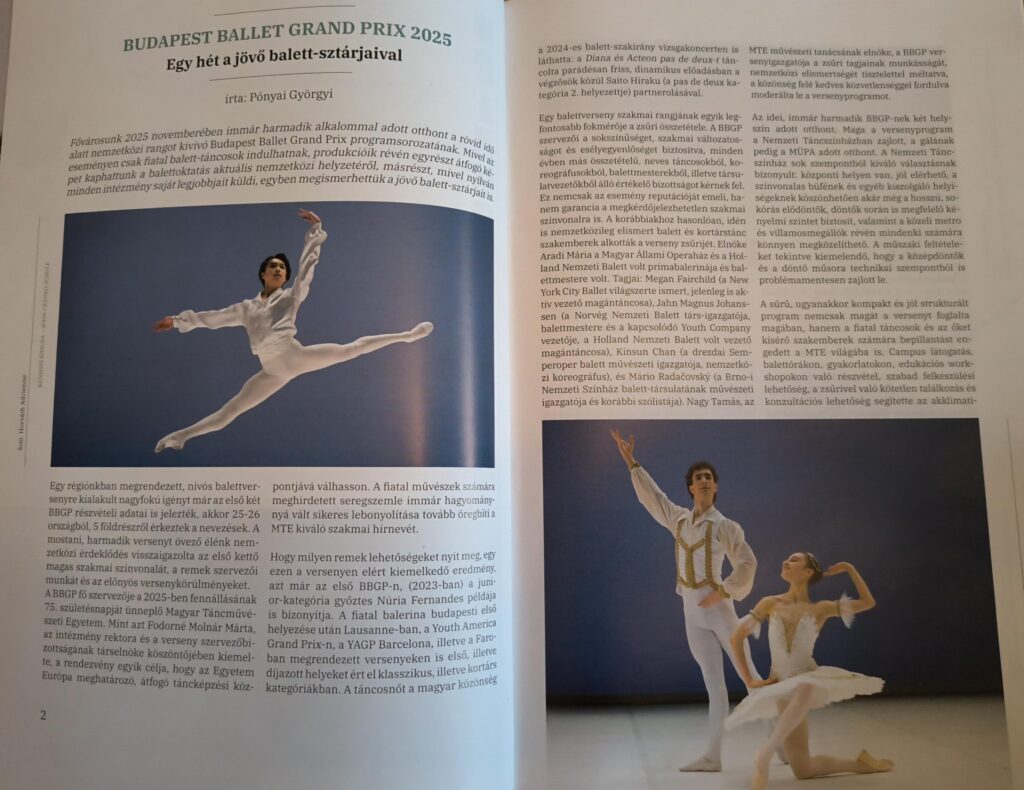 A Táncművészet 2026 tavaszi száma átfogó és izgalmas betekintést kínál a Budapest Ballet Grand Prix világába. A részletes beszámoló nem csupán a verseny eseményeit követi végig, hanem szélesebb perspektívába helyezve képet ad a balettoktatás aktuális nemzetközi helyzetéről is: kirajzolódnak a különböző képzési rendszerek sajátosságai, a technikai és művészi elvárások változásai, valamint azok a tendenciák, amelyek a jövő táncművészetét formálják.