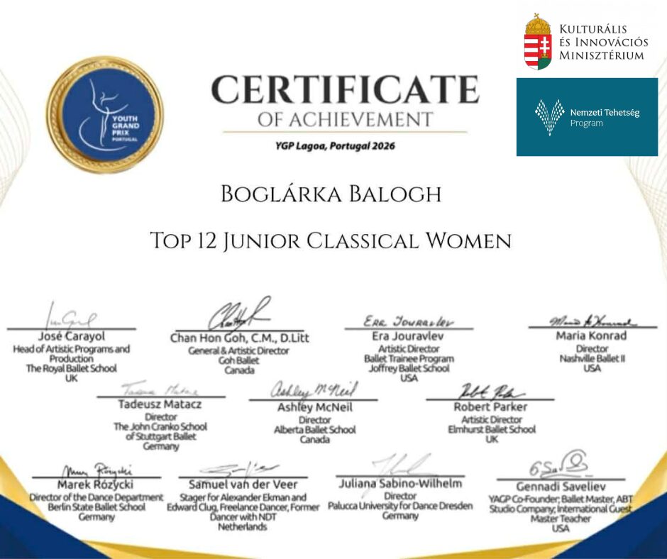 Balogh Boglárka a Nemzeti Tehetség Program és a Kulturális és Innovációs Minisztérium támogatásával vehetett részt a YAGP kétfordulós versenyén, és egy modern valamint két klasszikus variációval érkezett Portugáliába.